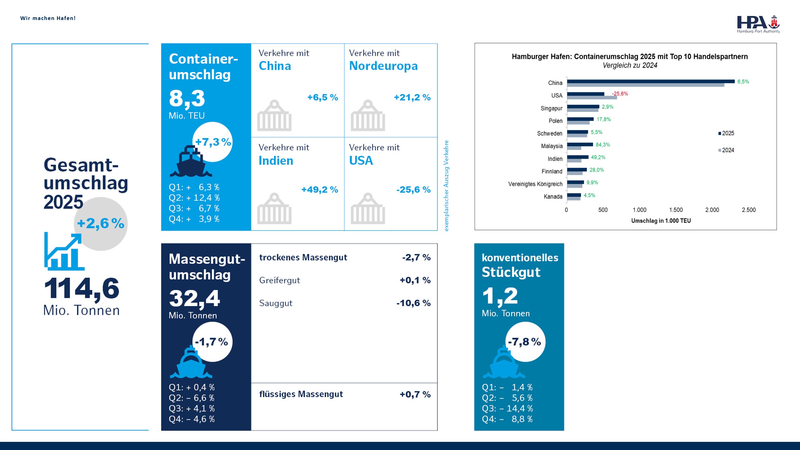 Wir stellen Ihnen hier eine Auswahl unseres Foto- und Filmmaterials zum Download zur Verfügung. Die Rechte an den Fotos und Filmen liegen bei der Hamburg Port Authority. Die HPA stellt das Material in Zusammenhang mit der Berichterstattung über die Hamburg Port Authority in journalistischen Medien unter Angabe des copyrights kostenfrei zur Verfügung. Bitte lesen Sie dazu unsere Nutzungsbedingungen oder kontaktieren Sie unsere Pressesprecherin Sinje Pangritz.